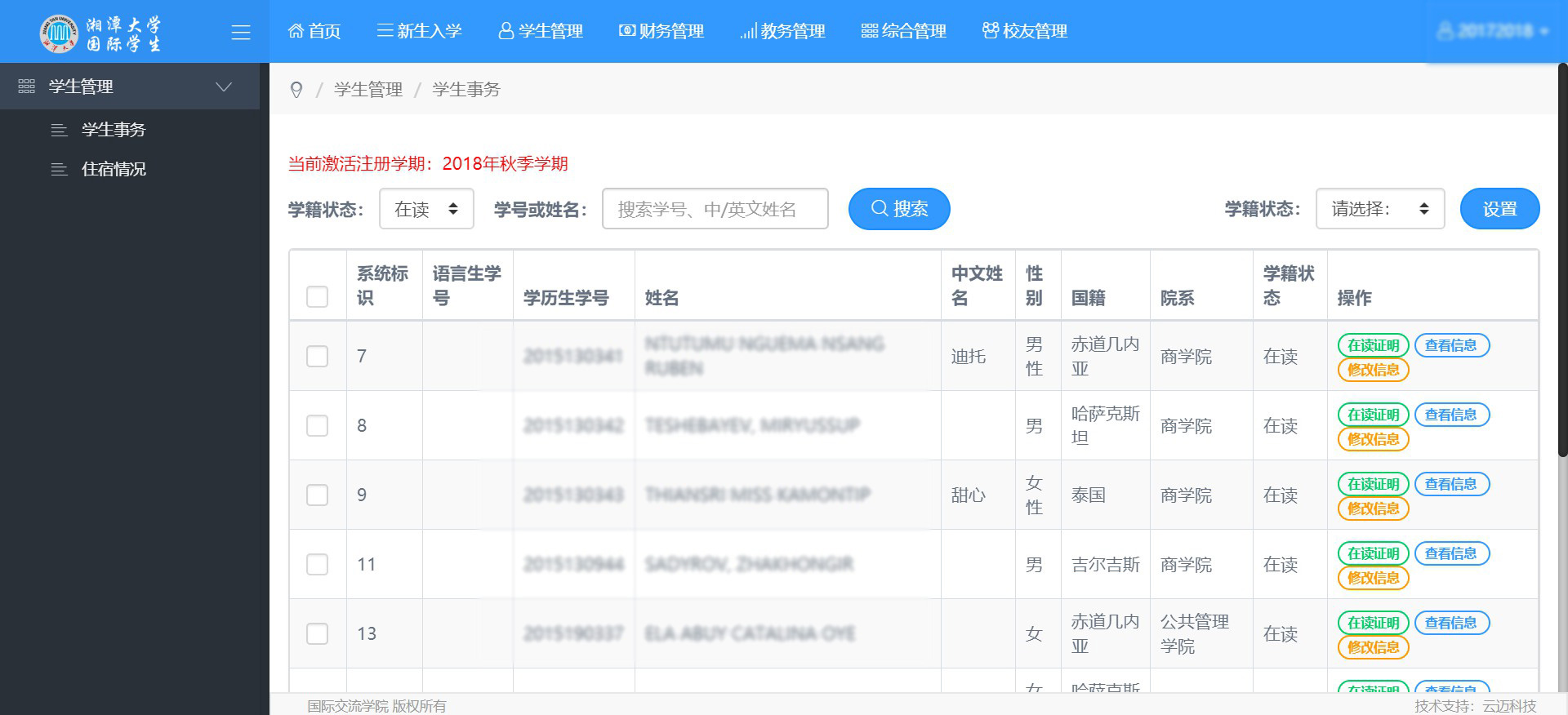 項(xiàng)目名稱:湘潭大學(xué)國際交流學(xué)院留學(xué)生管理系統(tǒng)